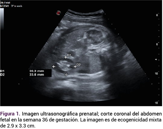 Las neoplasias abdominales en el feto son de baja incidencia: de 2 a 14 neonatos por cada 100,000 nacimientos vivos y, quizá por ello, pocas veces diagnosticadas, ya sean: teratomas, nefronas congénitas, neuroblastomas, hepatoblastomas, quistes de colédoco o lesiones quísticas abdominales.1 El diagnóstico de cada una se establece mediante ecografía; el teratoma es el subtipo de detección más frecuente.1
